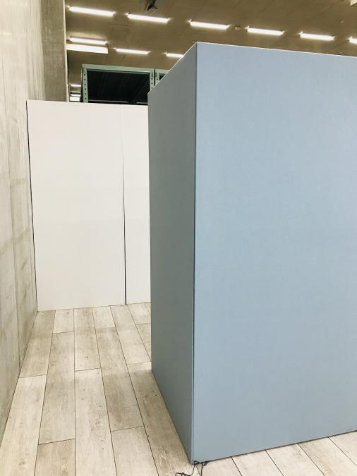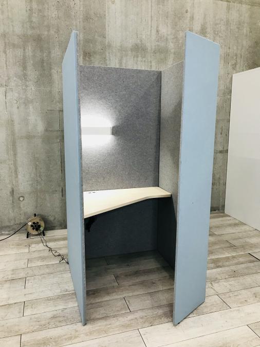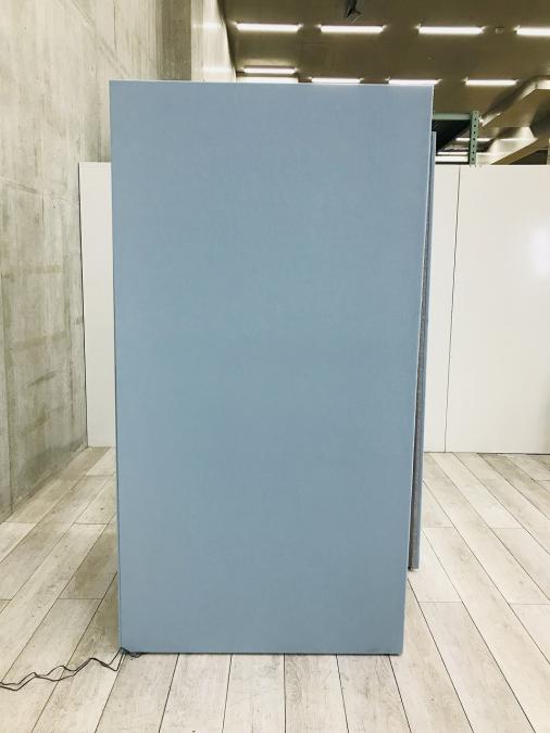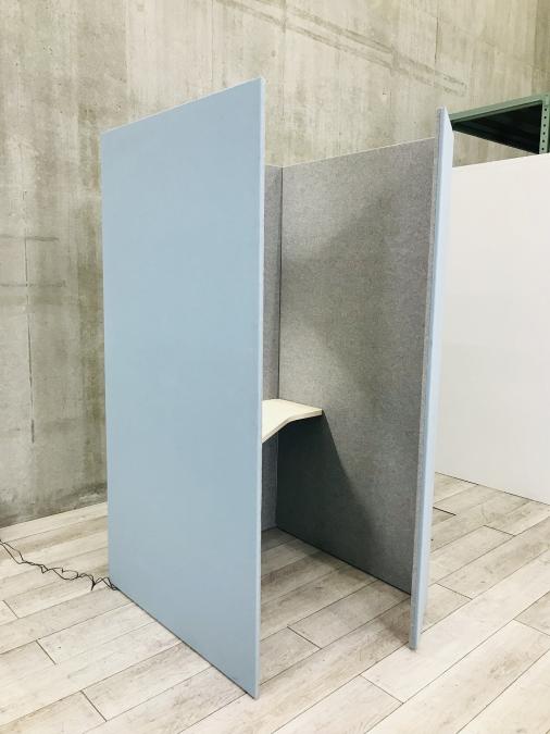 【T10】【商品入替のため、残り1台限り】オカムラ製 ドレープ(drape) ライトブルー × グレー 集中ブース ソロワークブース W1100/D1100/H1920サイズ 天板:高さ720サイズ ワーカーの集中を高める省スペースなワークブース! 1人用ブース!!