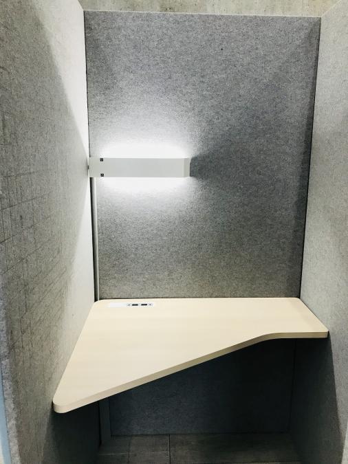 集中力を高めるだけでなく、ブースの対角線上に座ることで、