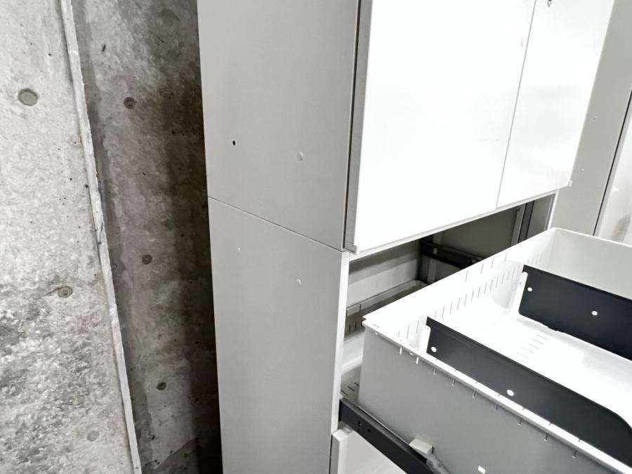 - 一部不具合ありそ引出の開閉不可、施錠不可、棚板無しといったの書庫の本来の効用を果たすための機能以外の一部が使用不可(例、扉、引出の開閉がしづらいなどがある。 )