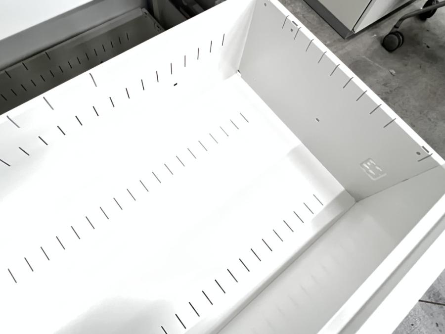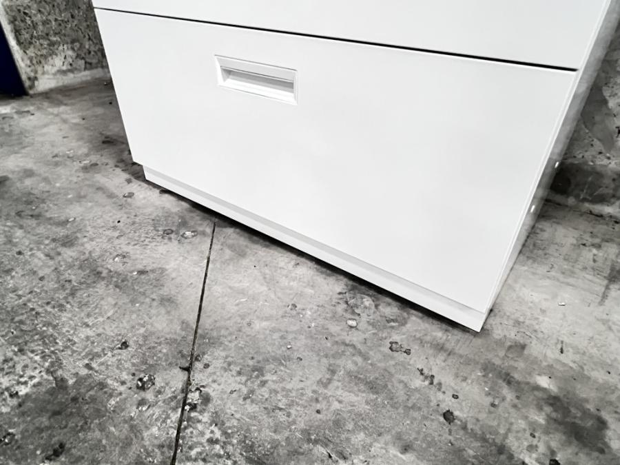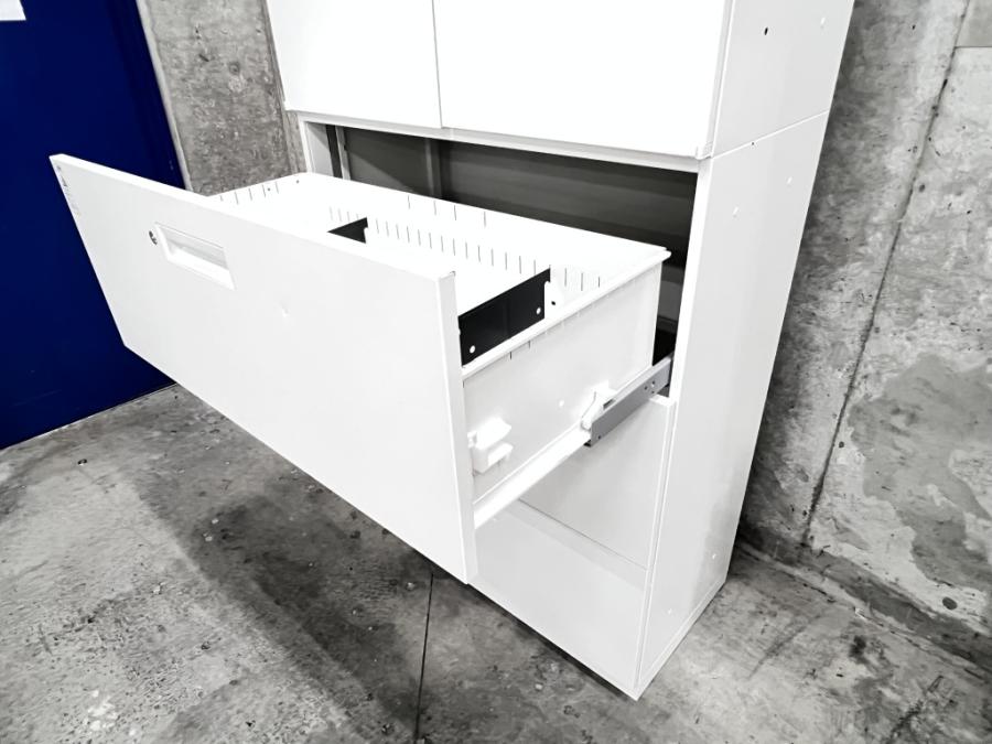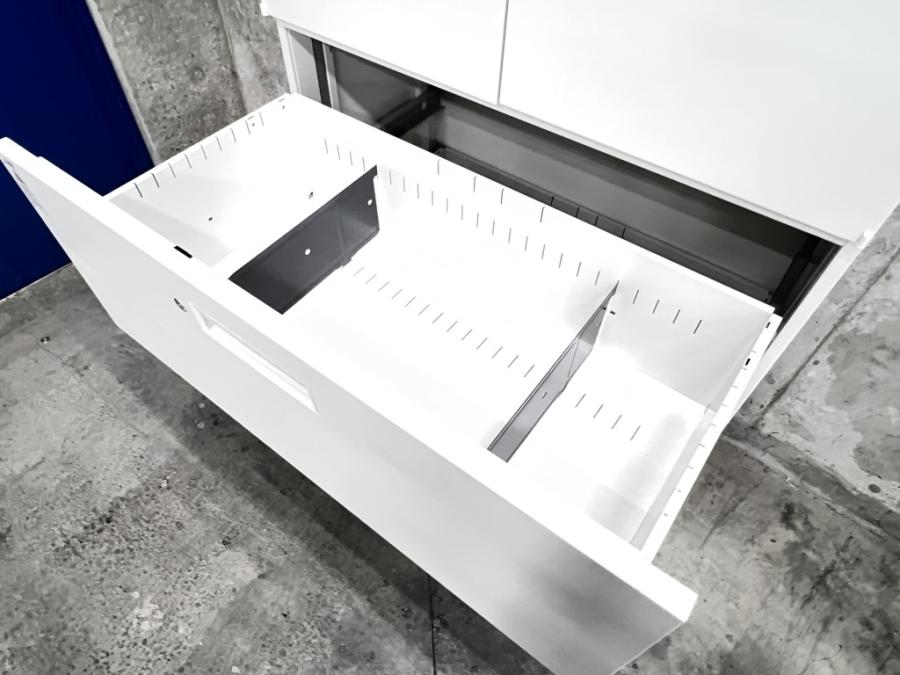 下置きのラテラル書庫は引き出しタイプになっており屈まず負担の少ない書庫になっております。