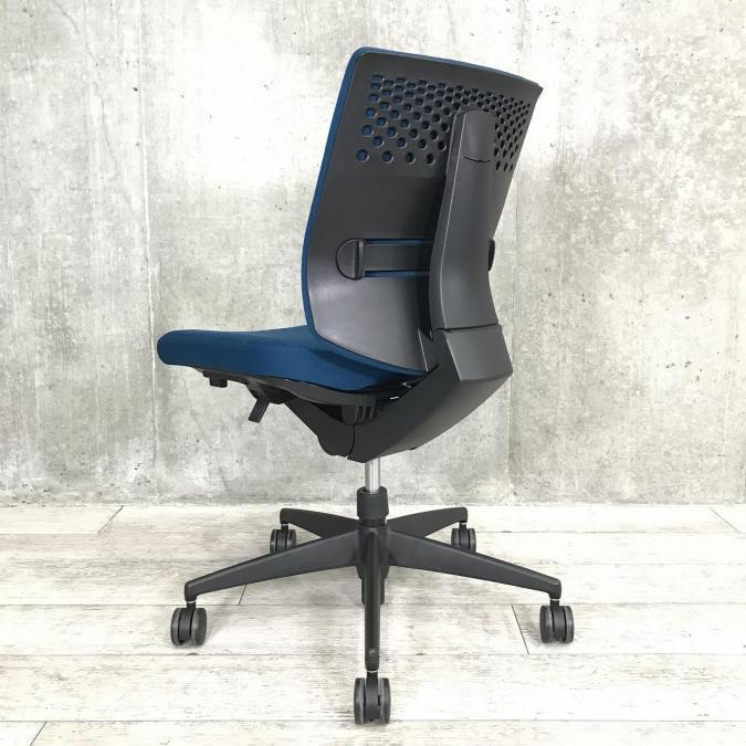コクヨ ウィザード2 ローバック プルシアンブルー×ブラックフレーム 肘無しモデル コートハンガー付き 定番の使いやすいチェア オフィスバスターズ梅田本店