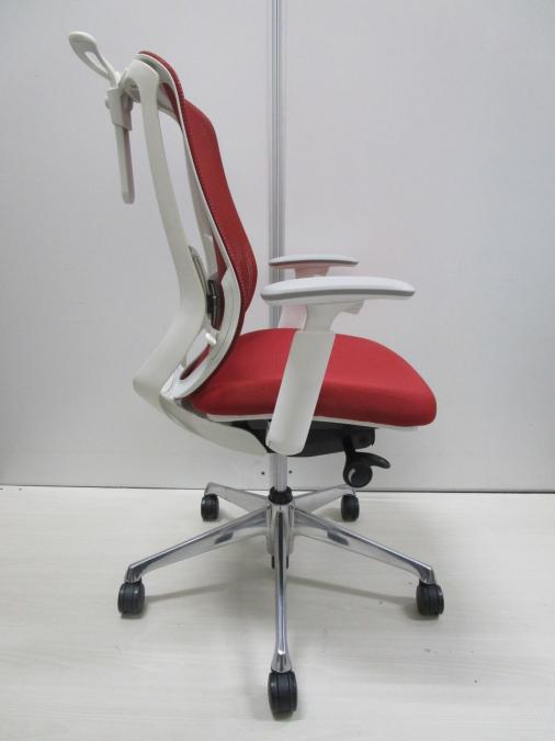 【大手町・神田サテライトCP】【三次元曲面が快適にフィット!!前傾チルト機能付の大人気メッシュチェア!】■オカムラ(okamura)製 シルフィー(Sylphy) 肘付き ハイバック ■メッシュバック ■可動肘 レッド/ フレーム色:ホワイト