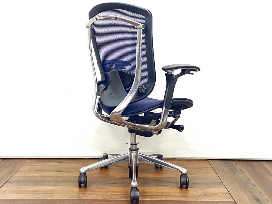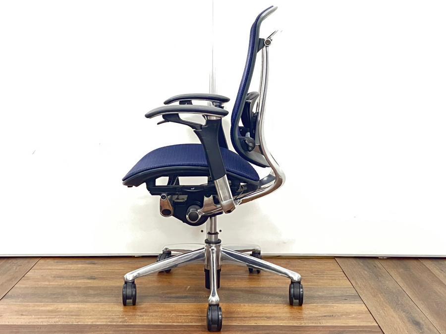 【オカムラ製の最高級チェアが残り1脚限りです!!】オフィスバスターズ 東大阪店 オカムラ製 コンテッサ シリーズ ダークブルー アジャストアーム※可動肘 背/座面メッシュ ランバー 世界で認められた革新的タスクチェア!人間工学に基づいた快適な座り心地を実現! 肘付きハイバックチェア!! 中古 外部倉庫品