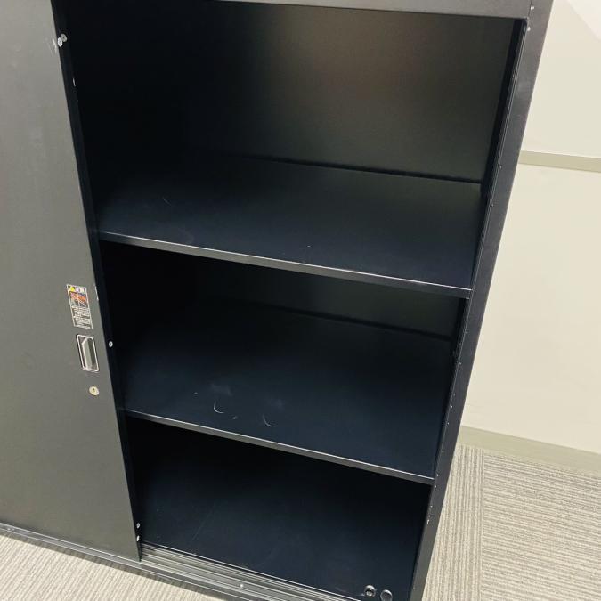 収納力抜群の引き戸タイプの書庫です。