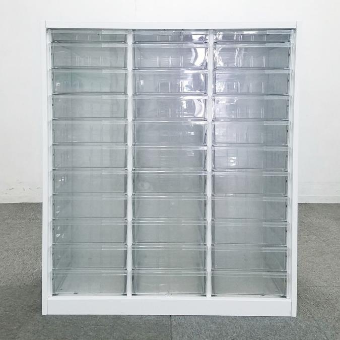 【書類・備品整理の必需品!】【珍しいクリトレが入荷!3列×浅型11段+深型5段】■イトーキ(ITOKI)製 シンラインシリーズ クリスタルトレー ローキャビネット ■3列×浅型11段+深型5段 ■天板・ベース付 ■色:ホワイト