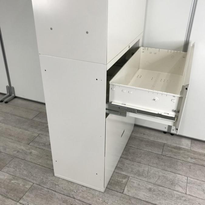 下置きのラテラル書庫は引き出しタイプになっており、屈まず負担の少ない書庫になっております。