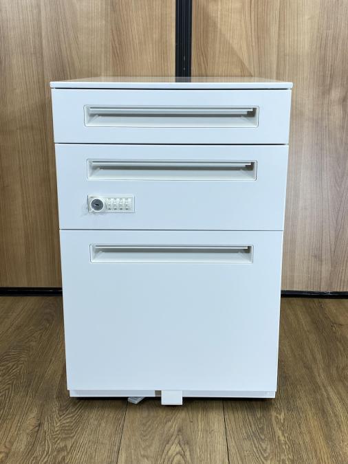 【在庫入替セール】ウチダ STワゴン 3段ワゴン シリンダー錠 鍵付き ホワイト H600のためH700のデスクと相性抜群【愛知・名古屋・豊田・静岡・浜松】