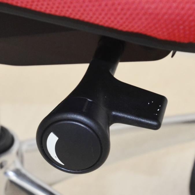 - 座面右下のレバーをスライドさせる「クイックスライドオペレーション」で、リクライニング反力を調整できます。強さの状態が視覚的にわかるため、直感的に操作がおこなえます。