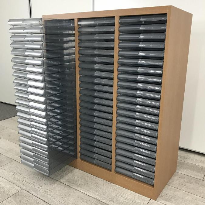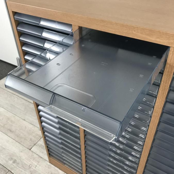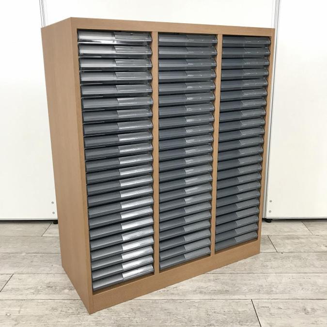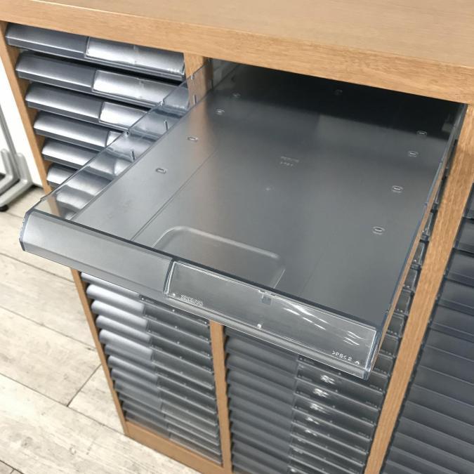 【小分けに書類を収納できるクリスタルトレイキャビネット!大容量!書類や備品のストックにピッタリ!】■コクヨ クリスタルトレー 3列22段 浅型 ■ブラウン 【弊社使用欄:A00973306 】- 在庫数