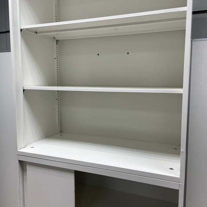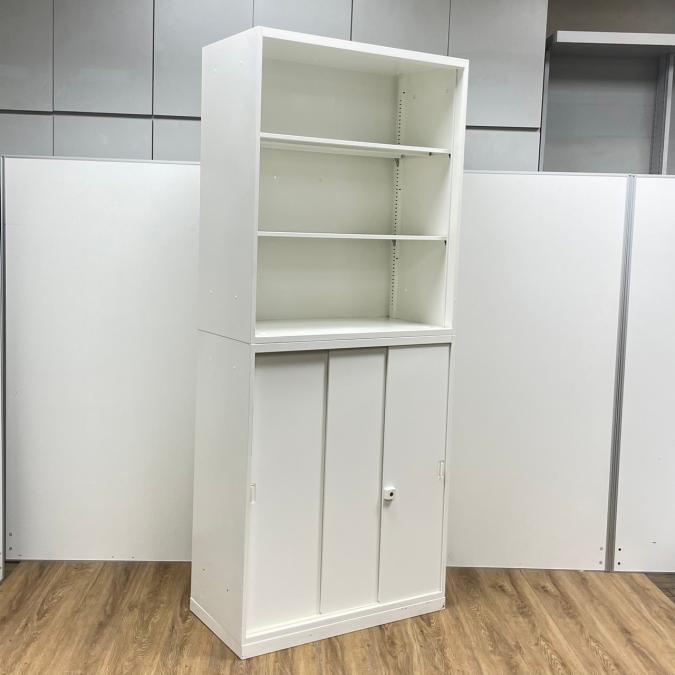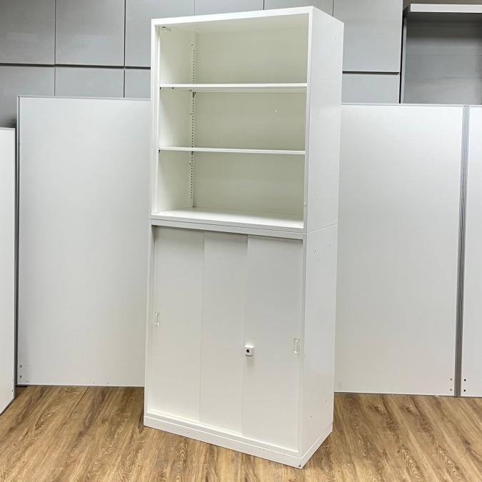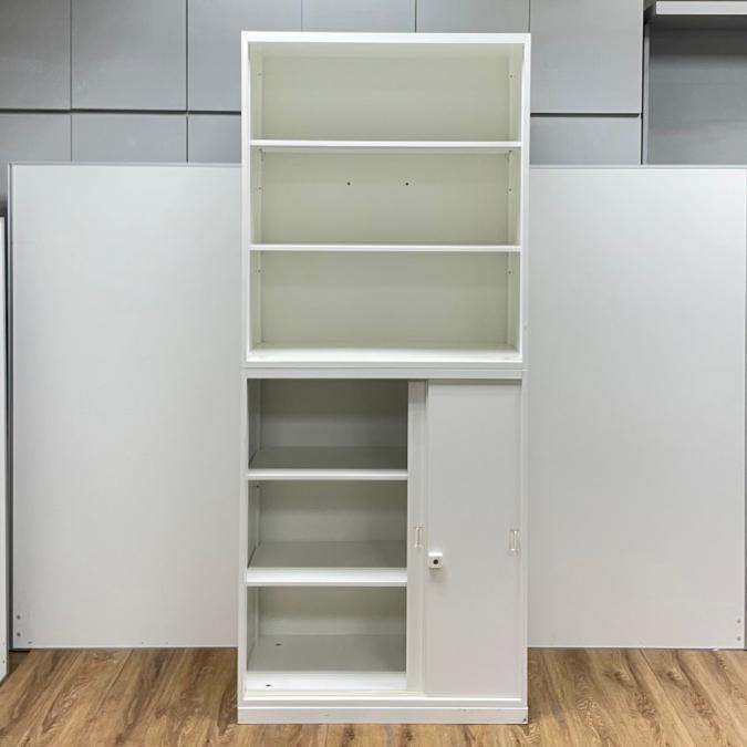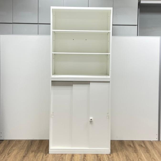 【商品入替のため、残り1台限り】オカムラ製 レクトラインシリーズ ホワイトカラー オフィス書類を一気に整理! オープン+引き違い 上下書庫セット!!- 京都東寺店