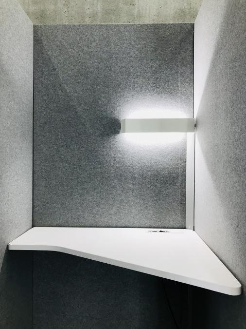 【吸音パネルがワーカーを包み込む ミニマムサイズのワークブース】
