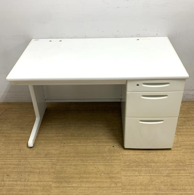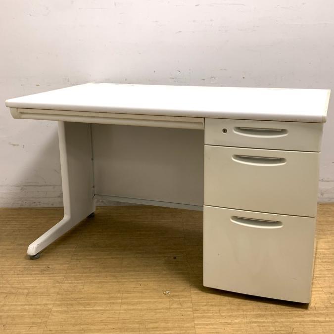 【在庫入替セール】【引出しやサイドの樹脂部分に日焼けあるためお安く】オカムラ SD-V 片袖机 定番のW1200サイズ ホワイト 鍵付き シリンダー錠- 名古屋千種店