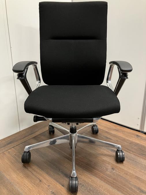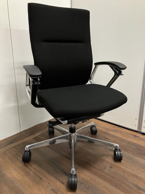 ※ひじ掛け部分に使用感ありのため、特価!【オカムラの最上級モデル!高級感と機能性を融合させたチェア!】■ハイバック 肘付き 背・座クロス張地(スエード調) 固定肘 ※サイド剥がれ有り ランバーサポート付き ブラック/オカムラ/デューク