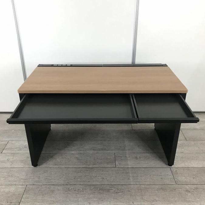 【在庫入替セール品!】木目調×ブラック!!おしゃれなオフィスを作りたいならこのカラー!フリーアドレスデスクとしも使用可能なパネル脚仕様! ■オカムラ/アドバンス/ブラウン- 立川・八王子店
