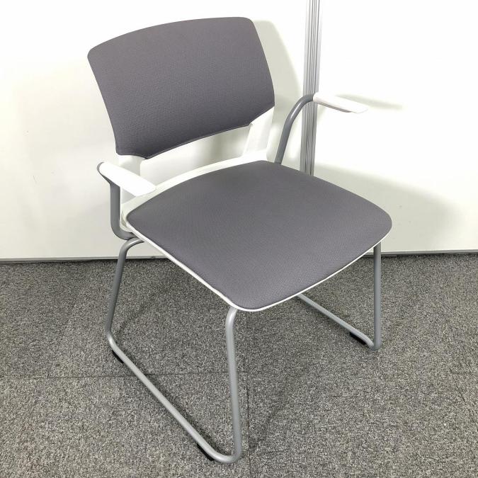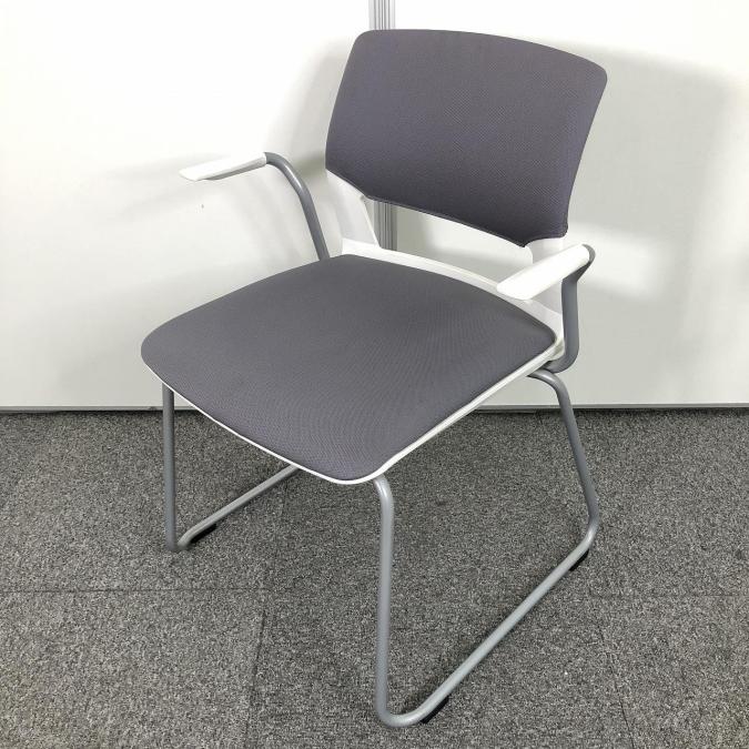 【軽量で収納もラクラク!ループ脚でデザイン性と安定性を両立!】■コクヨ(KOKUYO)製 160シリーズ スタッキングチェア ■固定肘 ■グレー ※キャスター無し- 在庫数