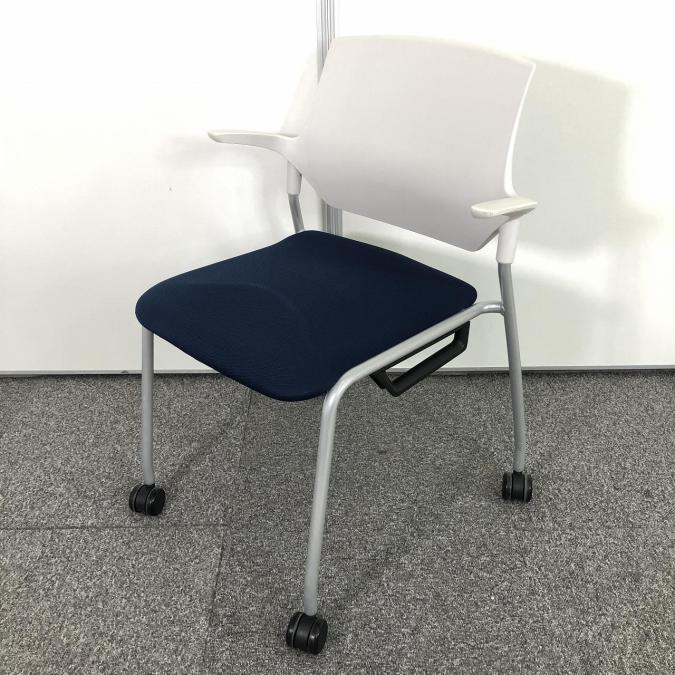 【T11】【商品入替のため、在庫限り】イトーキ製 ステンザ インディゴブルーxブラックのツートンカラー キャスター 積重ねタイプ スタッキングチェア!!