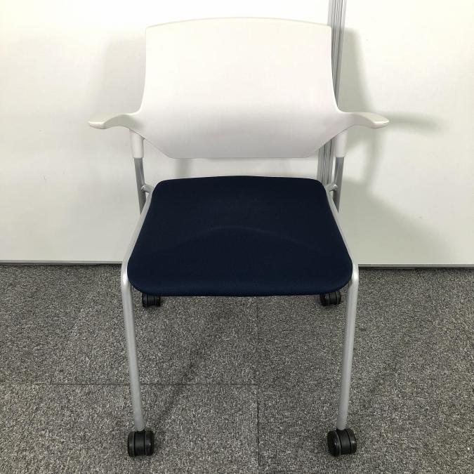 【定価約7万円】【重ねて収納可能!ベンディングシート使用で長時間座っていても疲労感軽減!】■イトーキ/ステンザ ■ネスティングチェア ■キャスター付き ■肘付