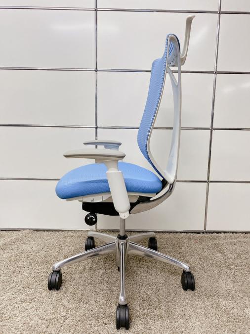 【在庫セール品】【定価約16万円】【前傾チルト付!流れるような美しいフォルムの最高級メッシュチェア!】■オカムラ(okamura)製 Sabrina(サブリナ) ハイバック 肘付き ■可動肘 ■背面メッシュ:アクアブルー/座面:ブルー×ホワイトフレーム【AD】