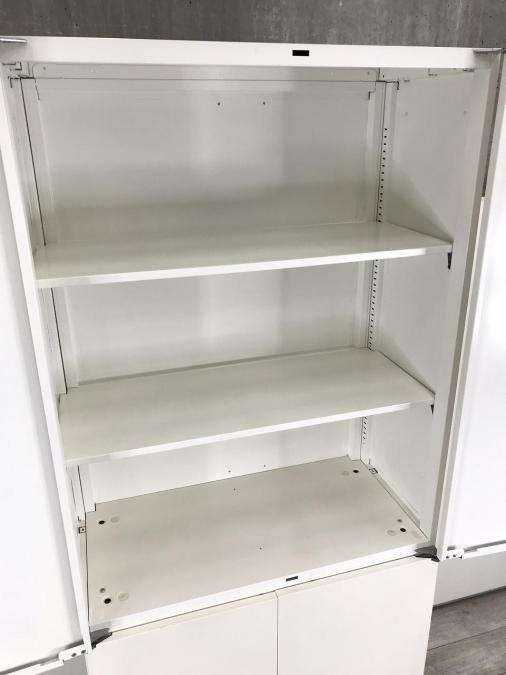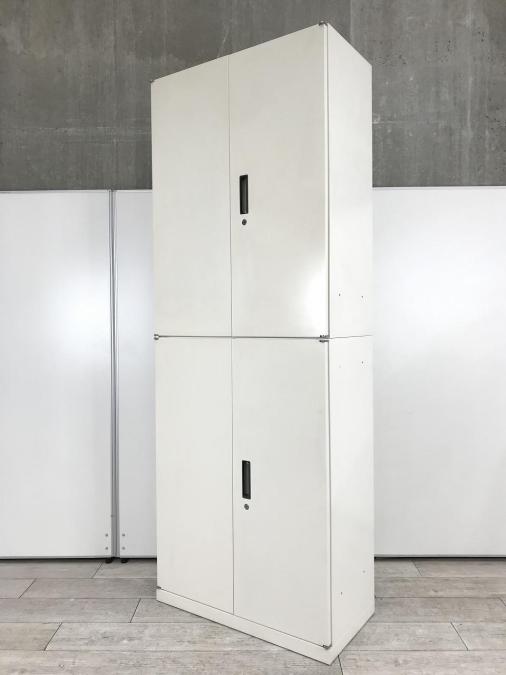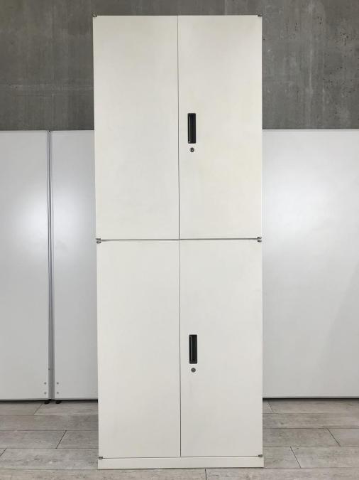 【使いやすい上下両開きの書庫セット!】■オカムラ ヴィラージュ 両開き+両開き 観音開き W800/D400mm ■ベース付き ホワイト シリンダー錠【弊社使用欄:A00969762,A00969763】- 在庫数