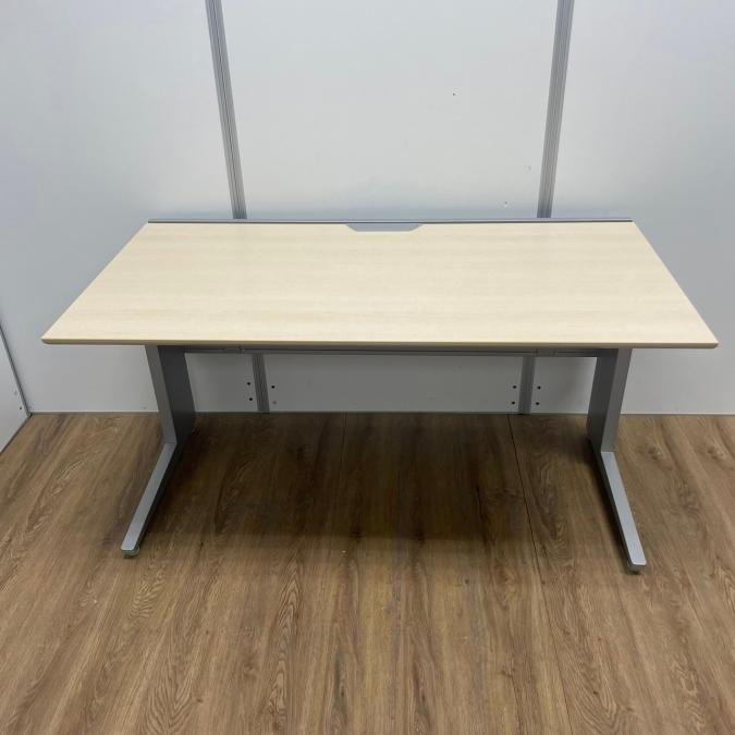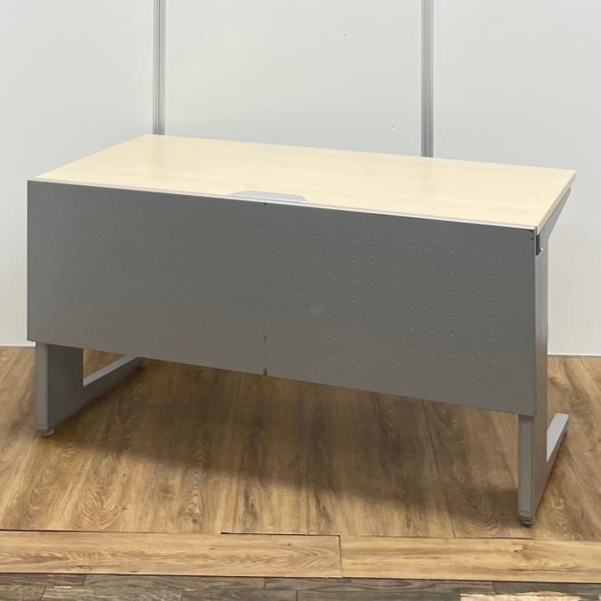 【商品入替のため、残り1台限り】オカムラ製 プロユニットシリーズ 木目ナチュラル天板×シルバー脚 幕板付 希少品!上長席や役員席にもおすすめ 注意※奥行735サイズ W1400平机!!- 京都東寺店