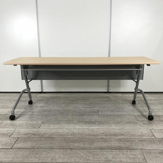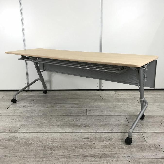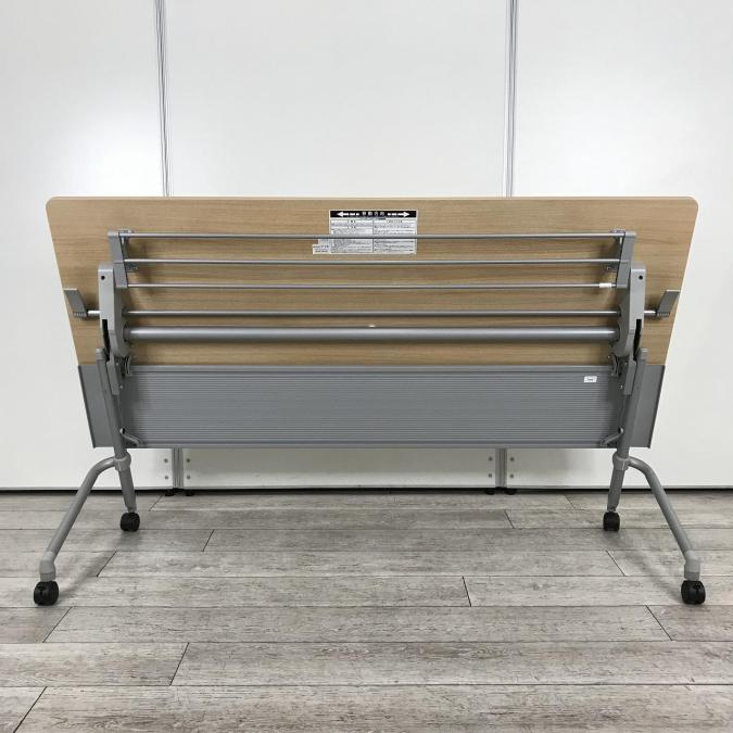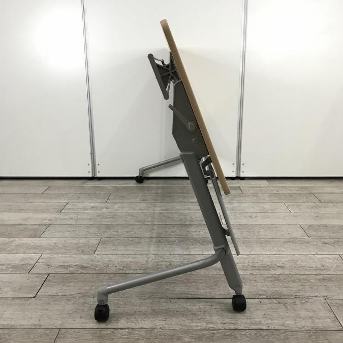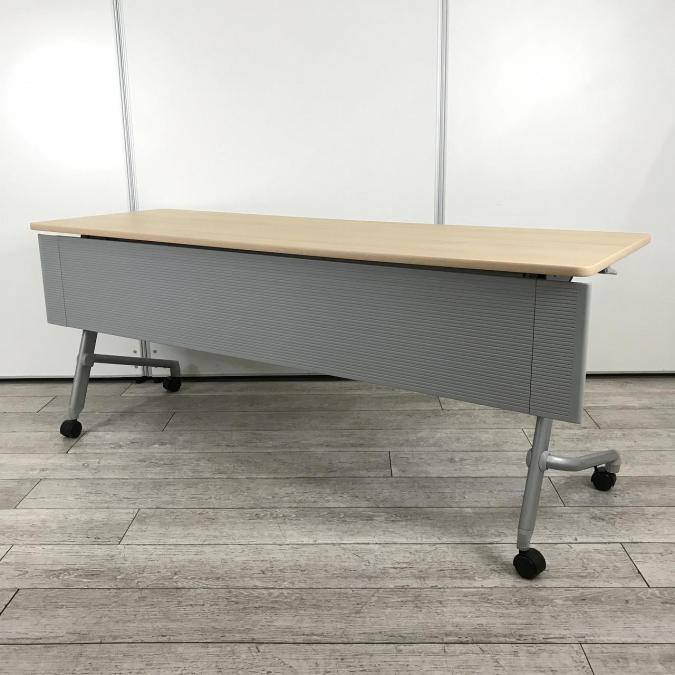 【天板跳ね上げ式でコンパクトに!キャスター付きで移動も楽々!】■ナイキ(NAIKI) サイドスタックテーブル 会議用テーブル ■幅1800㎜ ■天板:木目調ナチュラル ■幕板付き/キャスター付- つくば店