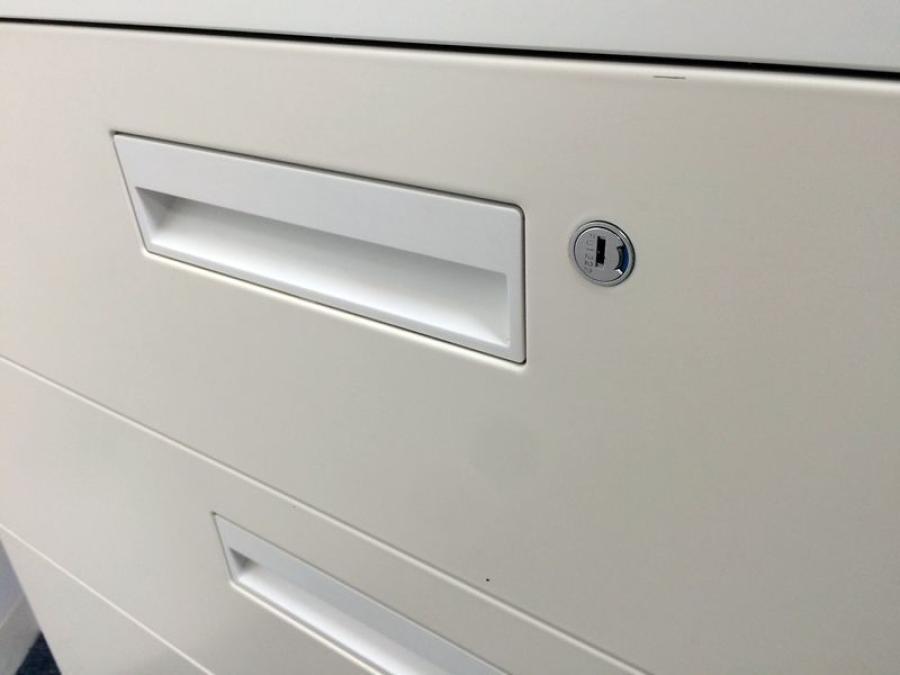 【限定1台入荷】5段の大容量引出書庫 人気シリーズのホワイト書庫【福岡オフィス家具】【福岡中古家具】【中古事務什器】【中古チェア】【中古椅子】- 福岡西店
