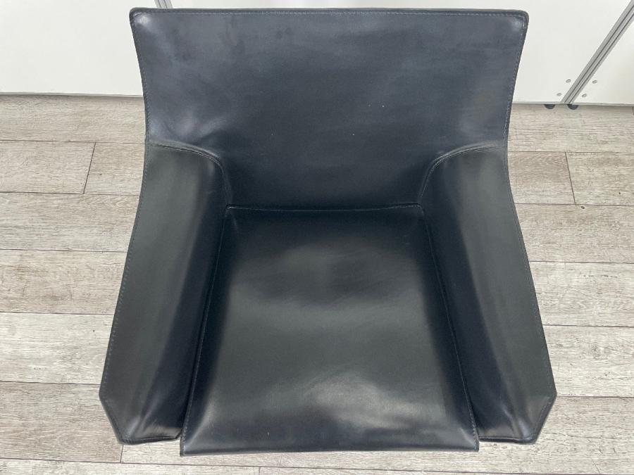 カッシーナ社のなめし革をまとった、重厚かつモダンな一品で、美しいシルエットはラウンジチェアとしてのデザインを見事に完結させています。