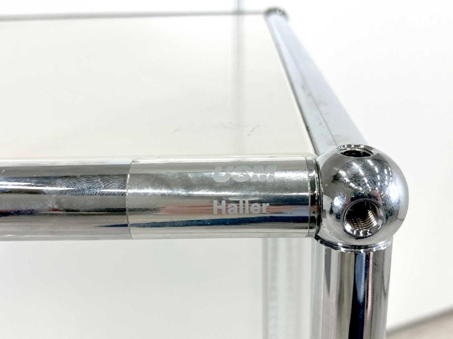 USMハラー 1連1段 脚付きキャビネット/ナイトテーブル ピュアホワイト D500 ガラストップ