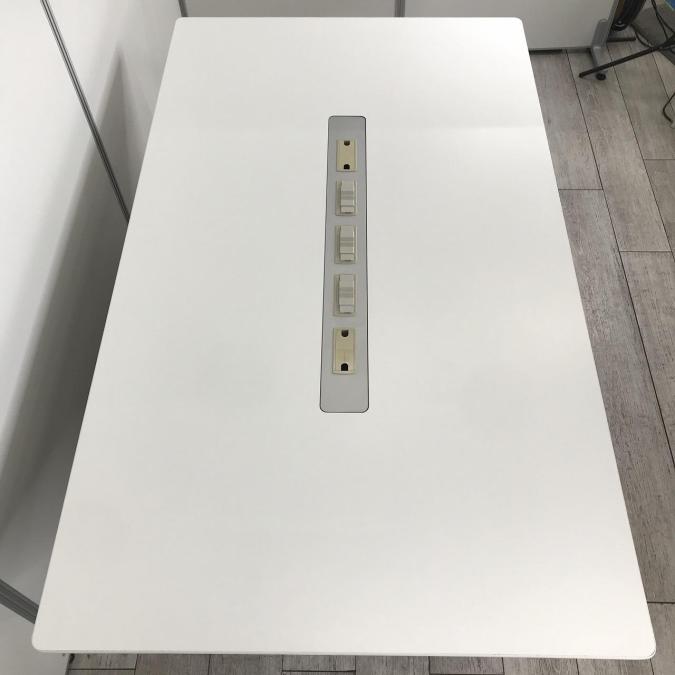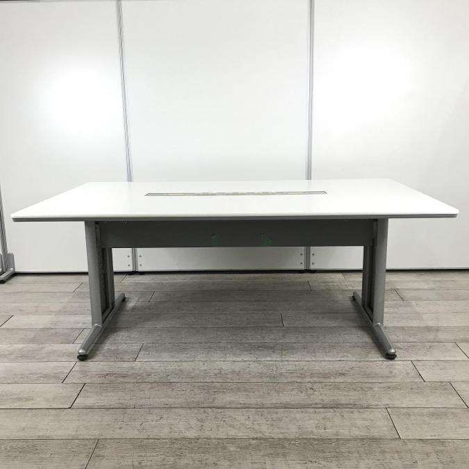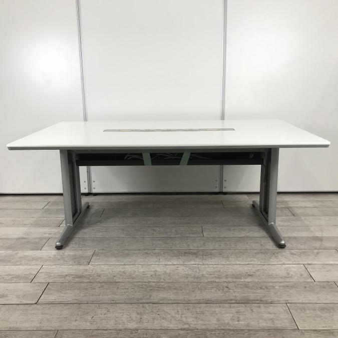 【便利な配線孔付!おしゃれなホワイト天板のミーテイングテーブルが入荷!】■オカムラ(okamura)製 ミーティングテーブル 会議用 T字脚 ■W1800×D1050×H700㎜ ■ホワイト- 品川・三田店