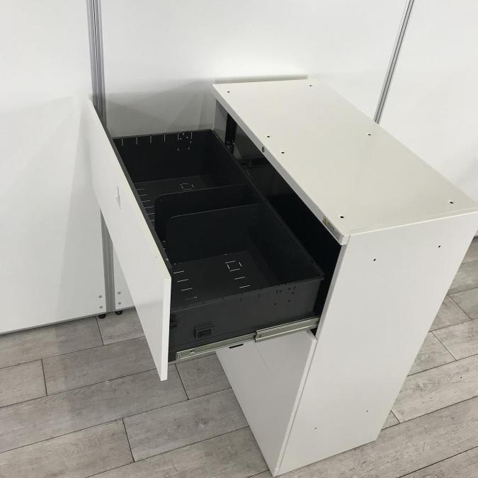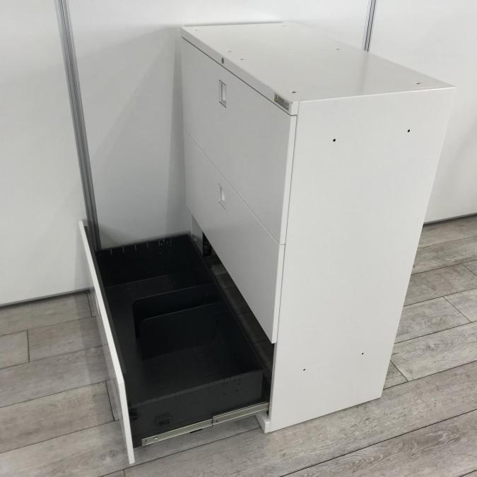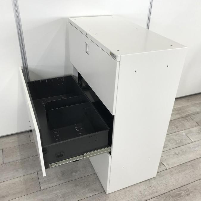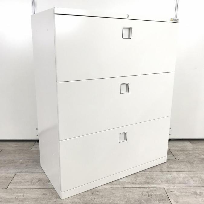 【使いやすさで選ぶならコレ!大容量の三段キャビネット】■オカムラ(Okamura)製 レクトラインシリーズ(Rectline) 3段ラテラル書庫 ローキャビネット ■天板付き ■シリンダー錠 ■ホワイト