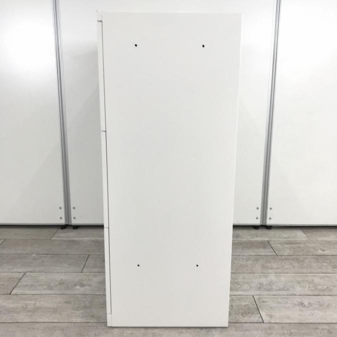 オカムラ レクトライン 3段ラテラル書庫 ホワイト天板 シリンダー錠 鍵付き ※取っ手部分に若干日焼けあり