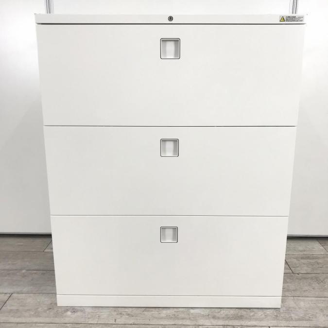 【ファイル収納にオススメ!高品質で使いやすい人気シリーズの3段ラテラル書庫!】■オカムラ(okamura)製 レクトラインシリーズ 3段ラテラル書庫 ローキャビネット H1100㎜ ■ホワイト ■シリンダー鍵 ■天板付き(天板:ホワイト) ※日焼け有