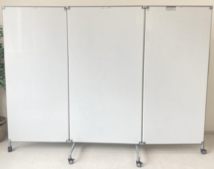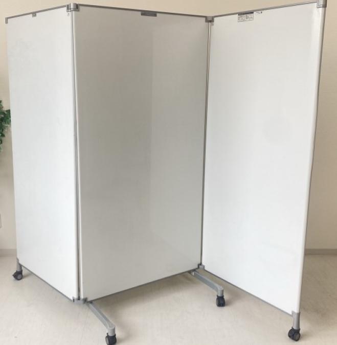 3つ折りホワイトボードパーテーション キャスターロック付き- 茨城南店
