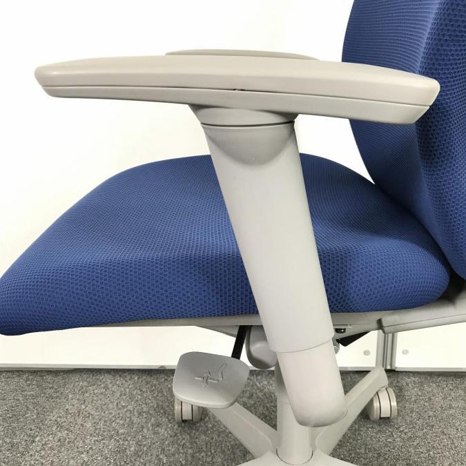 【機能充実のワーキングチェア!身体を包み込むやさしい座り心地!】■オカムラ(okamua)製 スラート 肘付ハイバックチェア ■ブルー(ミディアムブルー) ■可動肘 【入替セールにつき40%OFF!】- つくば店
