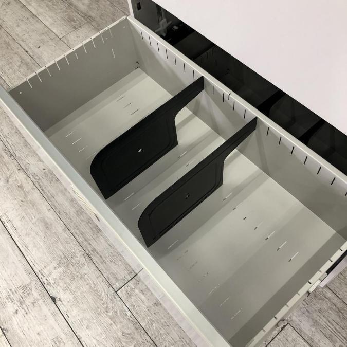 - 完備ベース、連結ビス、仕切り板が完備されている。