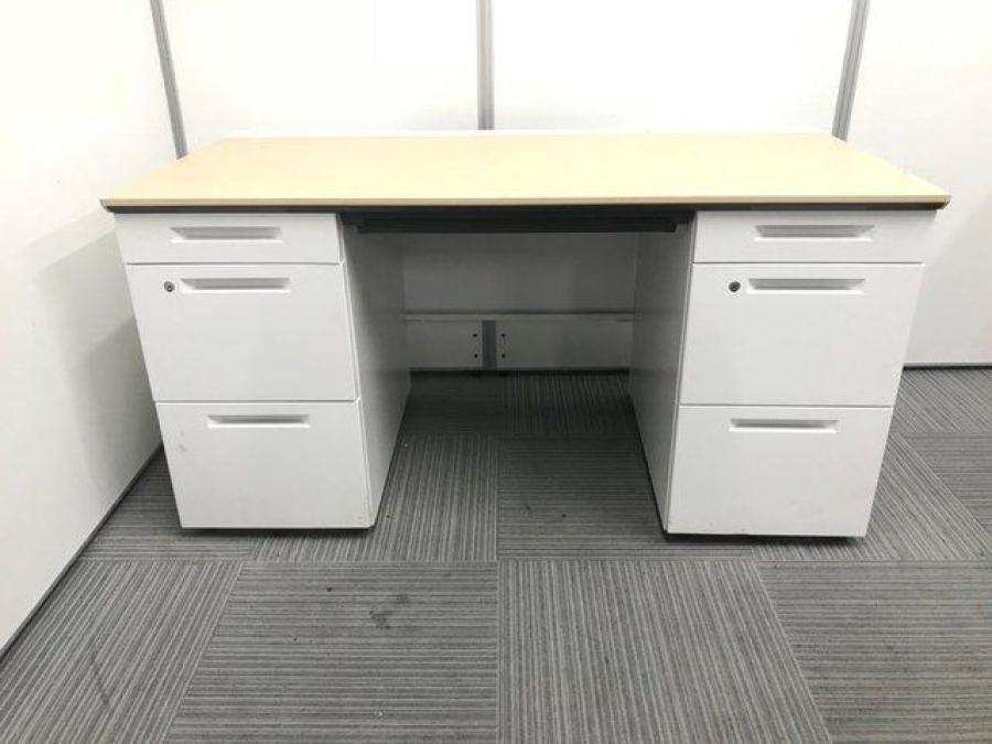 【24⑫在庫入替セール】一部訳アリのため大特価! ◆コクヨ ISシリーズ 両袖机 ナチュラル天板 / 格安 / 中古 / 事務デスク / 事務机 / 上長 / 上司用 / 袖机 / オフィスデスク- 福岡博多店
