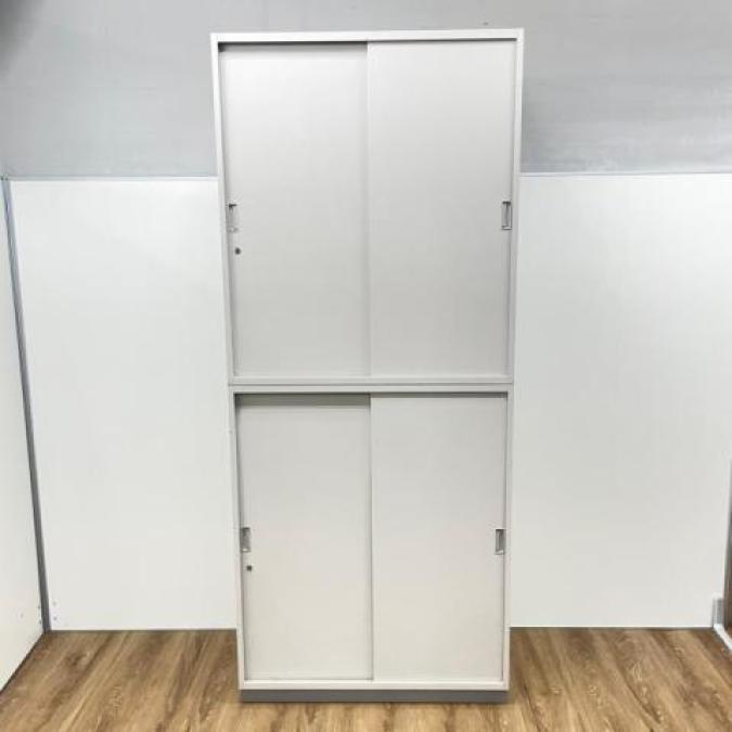 【幅800㎜】【3枚引き違い扉なので開閉スペースがいりません!省スペース化に貢献!】■イトーキ(ITOKI)製 シンライン(THIN LINE)シリーズ 上下引き違い書庫セット 3枚扉 ハイキャビネット ■ニューグレー ■シリンダー錠