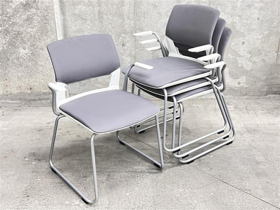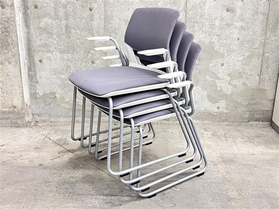 【4脚1セット!】【軽量で収納もラクラク!ループ脚でデザイン性と安定性を両立!】■コクヨ(KOKUYO)製 160シリーズ スタッキングチェア ■固定肘 ■グレー ※キャスター無し- 在庫数