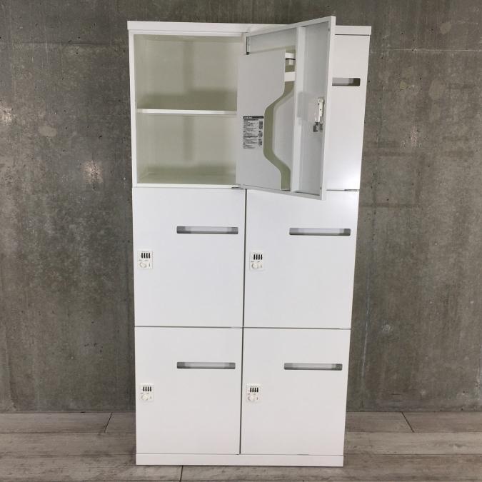 【在庫入替セール】オカムラ レクトライン 6人用メールロッカー ダイヤル錠 ホワイト メールポスト付き ※非常解除キーは別途費用で作成可能- 名古屋千種店