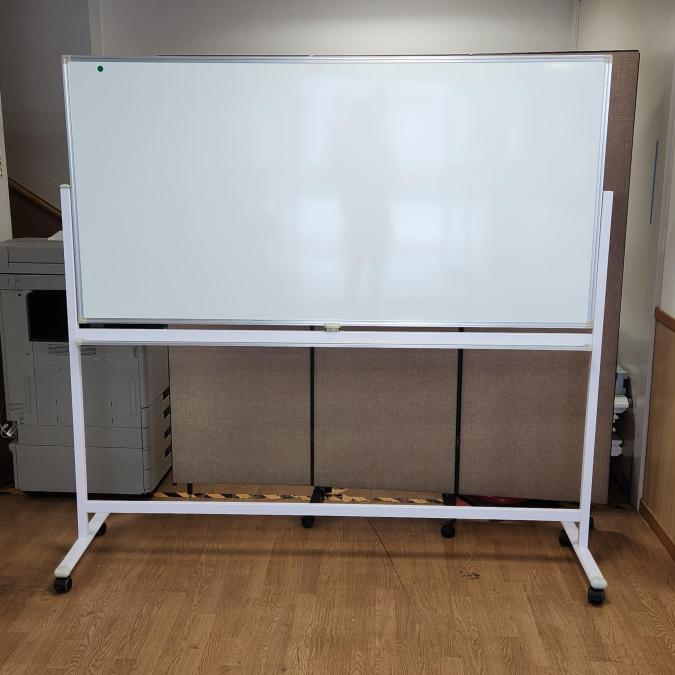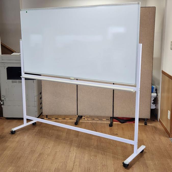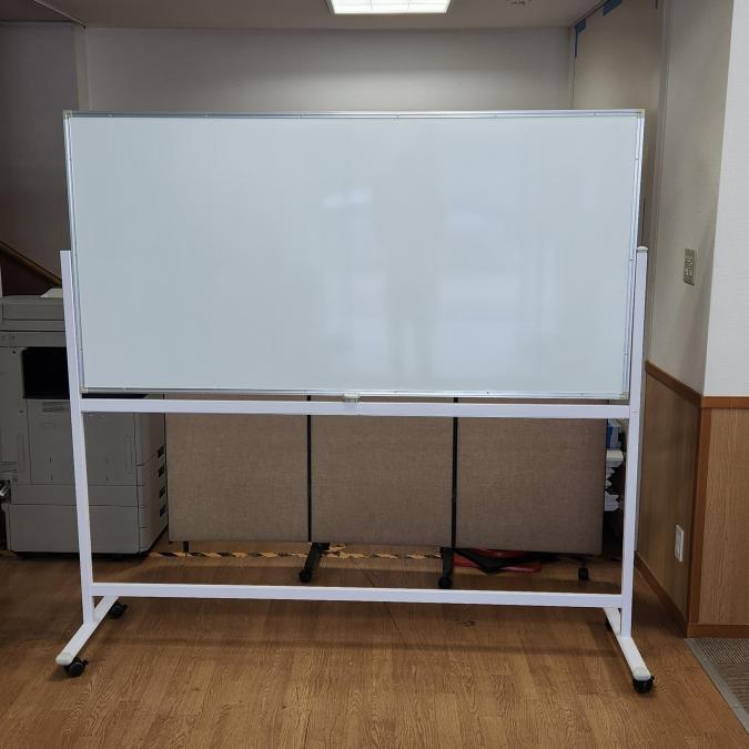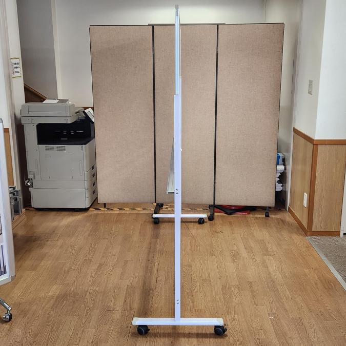 【福岡西店撮影】【訳アリ】自立式ホワイトボード w1800mm 両面使える! レイアウト変更 ホワイトボード【福岡オフィス家具】【福岡中古家具】【中古事務什器】【中古チェア】【中古椅子】- 福岡西店