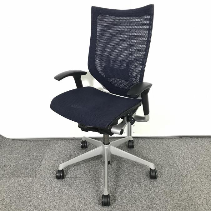 【在庫セール品】【定価約20万円】【人間工学に基づいた快適設計で身体にやさしくフィット!】■オカムラ(okamura)製 バロンチェア 肘付ハイバック 可動肘付 ■メッシュ ■ダークブルー 【ベストなポジションが得られる先進設計!】