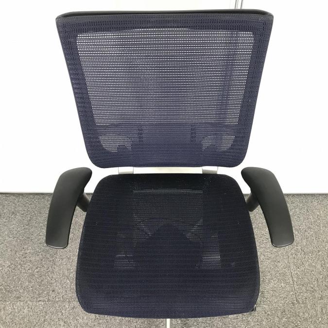 【オフィスの執務室、会議室におすすめ!】■オカムラ(okamura)製 バロン(Baron)チェア 肘付き ハイバック 背面メッシュ ■可動肘 ■ダークブルー × ホワイトシェル【硬めの座面が大人気!国産メッシュチェアの代表格!】