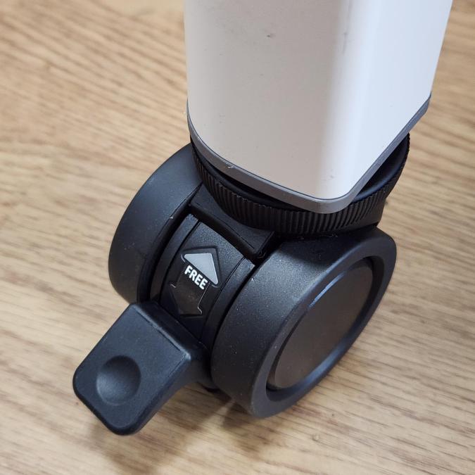 キャスターはロック時にはストッパーが床に接地して、しっかりと固定できるリフトロック双輪キャスターを使用しています。
