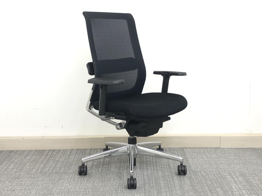【スマートなデザインの上質チェア!】■コクヨ製 エアフォート 肘付ハイバックチェア ■ブラック ランバーサポート付き 可動肘