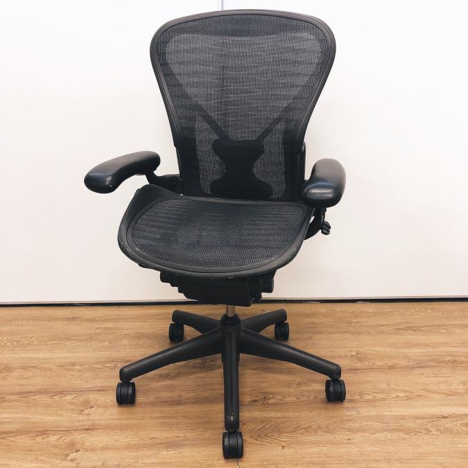 【2脚限定】【クレジット決済優先】OAチェア 肘付 可動肘 ハイバック メッシュ ハーマンミラー アーロンチェア ブラック 前傾姿勢 前傾チルト オフィスバスターズ- なんば日本橋店