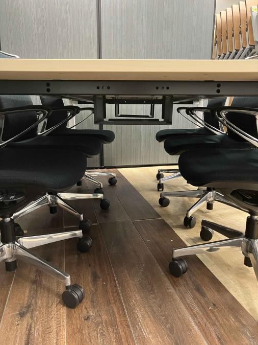 【在庫セール品・2台限定】【T12】■コクヨ製 ワークフィット ミーティングテーブル W1200×D1400㎜ ■配線カバー付き ■木目ナチュラル【配線カバー付きなのでデジタルツールを用いた会議にオススメ!】