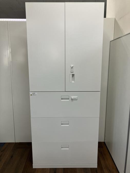 【省スペースに大収容!オフィス書類をスッキリ整理!】■イトーキ エスキャビネットシリーズ 上下書庫セット(両開き+3段ラテラル) ホワイト ■シリンダー錠 (3段ラテラルは各段施錠タイプ)