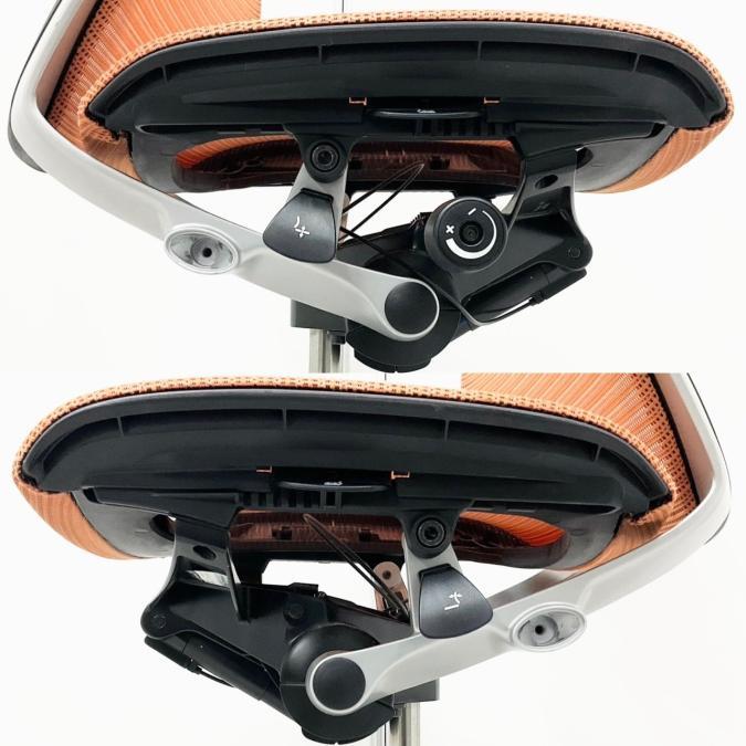 リクライニングの硬さの強弱は無段階で調整が可能です。