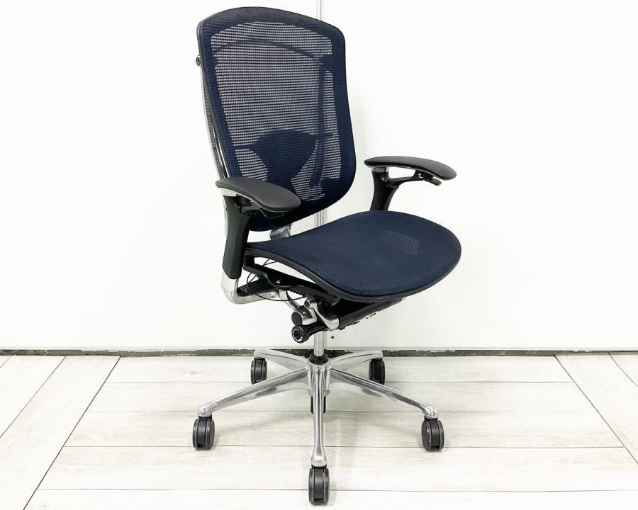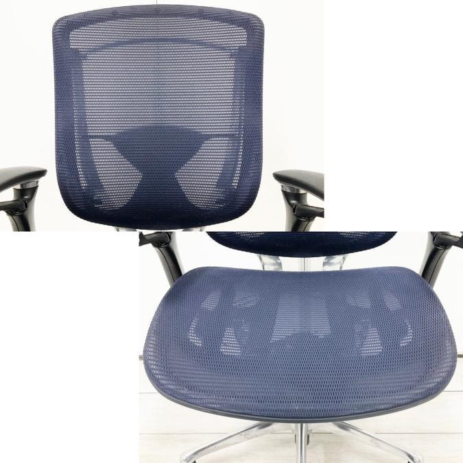 【オカムラ製の最高級チェアが残り1脚限りです!!】オフィスバスターズ 東大阪店 オカムラ製 コンテッサ シリーズ ダークブルー アジャストアーム※可動肘 背/座面メッシュ ランバー 世界で認められた革新的タスクチェア!人間工学に基づいた快適な座り心地を実現! 肘付きハイバックチェア!! 中古 外部倉庫品