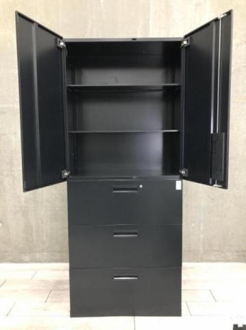 【在庫入替セール品!(本在庫限定価格)】【☆スタイリッシュな空間を演出!】■コクヨ製 エディアシリーズ 上下書庫セット(両開き+3段ラテラル)ブラック ■収納量豊富!オフィス書類をスッキリ整理!- 川崎店